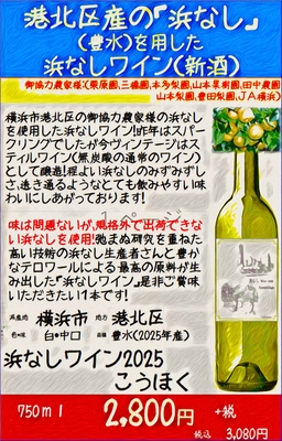 浜なしワイン2025 750ml(2025年秋収穫横浜市港北区産 浜なし100%) 販売価格 3,080円(税込み) 会員価格 (税込み) 通常価格 (税込み) 在庫 商品コード JANコード 数量 - + カートに入れる ツイートする シェアする